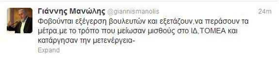 Δείτε τα tweets του Γιάννη Μανώλη: