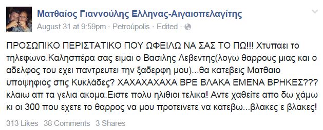 Ο λόγος για τον Ματθαίο Γιαννούλη, ο οποίος δέχθηκε τηλεφώνημα από τον Βασίλη Λεβέντη, με τον πρόεδρο της Ένωσης Κεντρώων να του προτείνει να τον συμπεριλάβει στο ψηφοδέλτιο του κόμματός του.