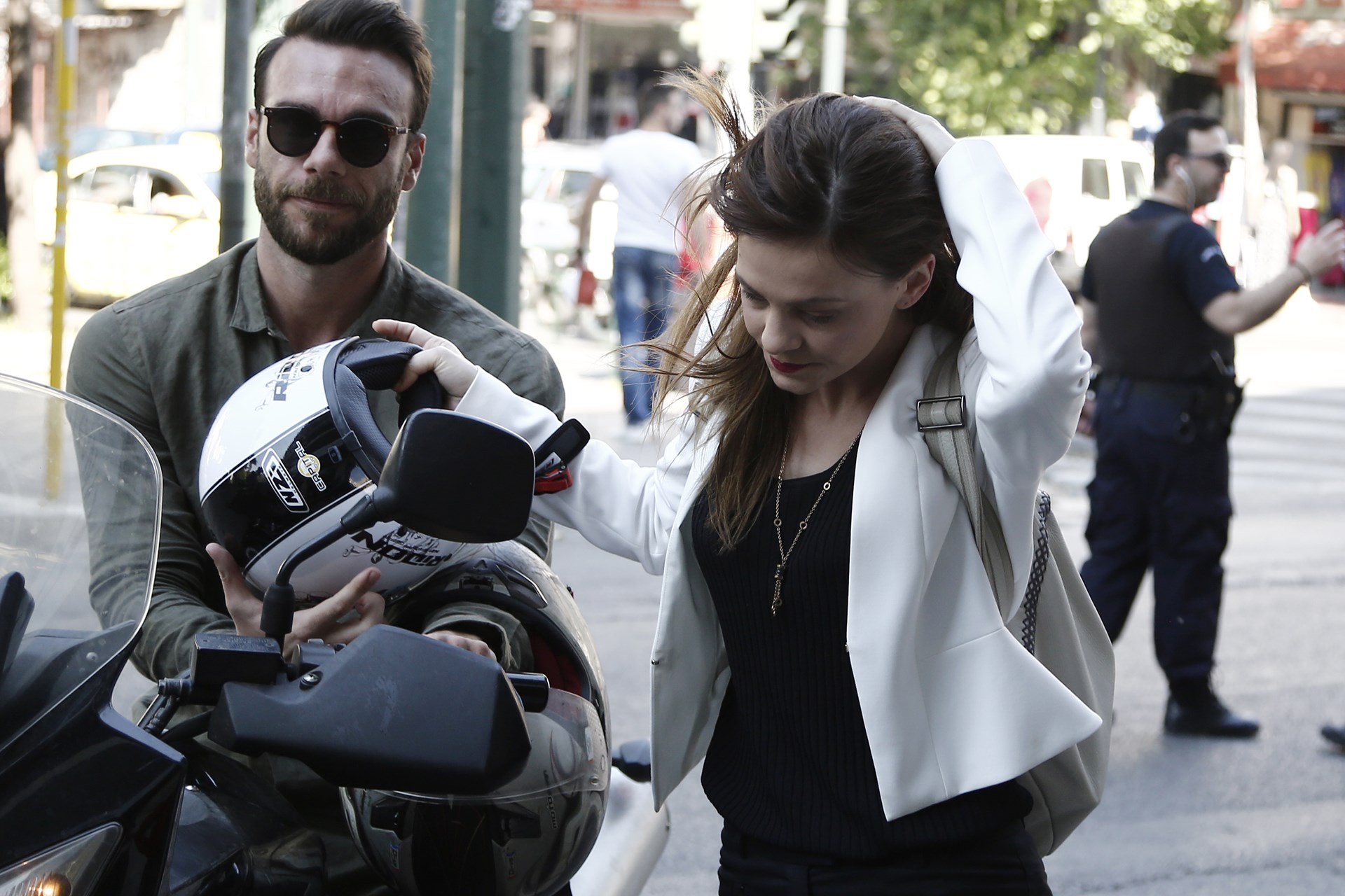 Τα βλέμματα, κατά την άφιξη της υπουργού, τράβηξε ένας γοητευτικός άνδρας που οδηγούσε τη μηχανή.