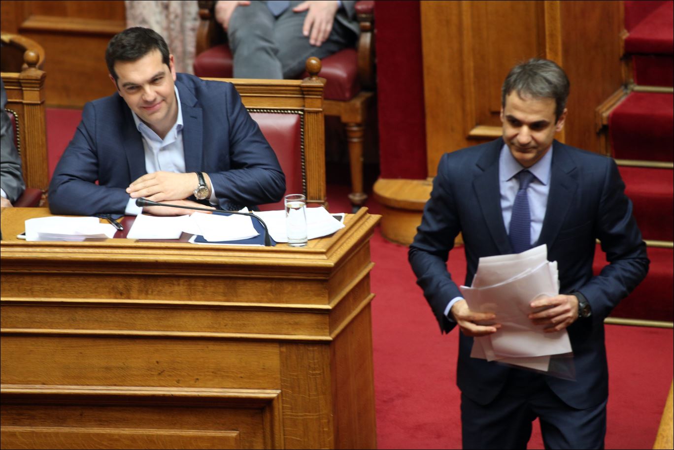 Την ώρα που ο πρόεδρος της Νέας Δημοκρατίας Κυριάκος Μητσοτάκης κατέβαινε από το βήμα μετά την ομιλία του στη συζήτηση για σύσταση Εξεταστικής Επιτροπής σχετικά με τα δάνεια των πολιτικών κομμάτων, ο πρωθυπουργός Αλέξης Τσίπρας είχε στραμμένο το βλέμμα του αλλού. Όπως βλέπετε και στις φωτογραφίες οι δύο άντρες δεν αντήλλαξαν ούτε ένα βλέμμα, κάτι που απεικονίζει την ένταση στις σχέσεις τους τουλάχιστον στην σημερινή «αναμέτρηση» στη Βουλή.