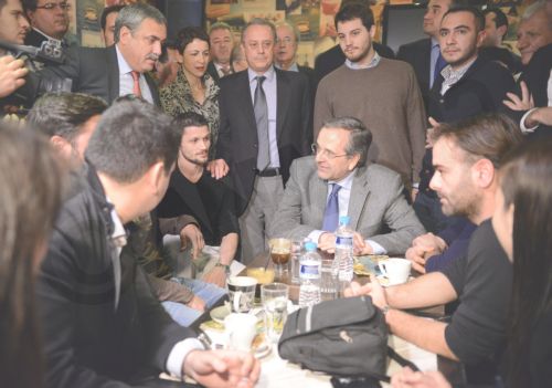 Σε καφετέρια της Ηγουμενίτσας βρέθηκε κατά την επίσκεψή του στην πόλη ο Αντώνης Σαμαράς. Στις φωτογραφίες τον βλέπετε να συνομιλεί με θαμώνες του καταστήματος.