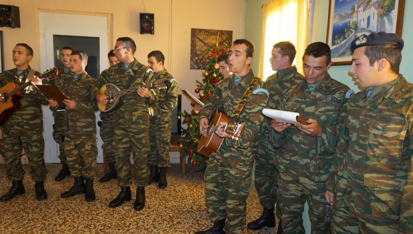 Τα κάλαντα έψαλε η φρουρά του φυλακίου στην Ψέριμου στον υπουργό Εθνικής Άμυνας, Πάνο Καμμένο, ο οποίος πραγματοποίησε επίσκεψη στο νησί.