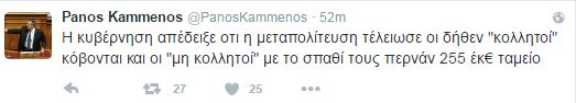 Τις εξελίξεις στον διαγωνισμό των τηλεοπτικών αδειών σχολίασε ο πρόεδρος των ΑΝΕΛ και υπουργός Εθνικής Άμυνας Πάνος Καμμένος, μέσω twitter.