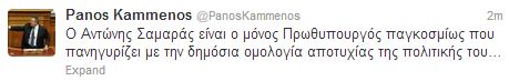 Ο πρόεδρος των Ανεξάρτητων Ελλήνων με ένα tweet στο προσωπικό του λογαριασμό στο twitter, σχολίασε την επίσκεψη του Πρωθυπουργού στις Ηνωμένες Πολιτείες.