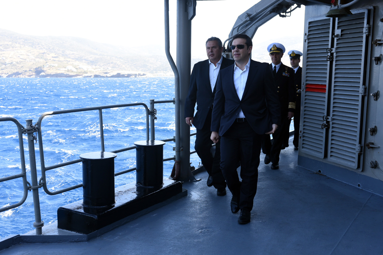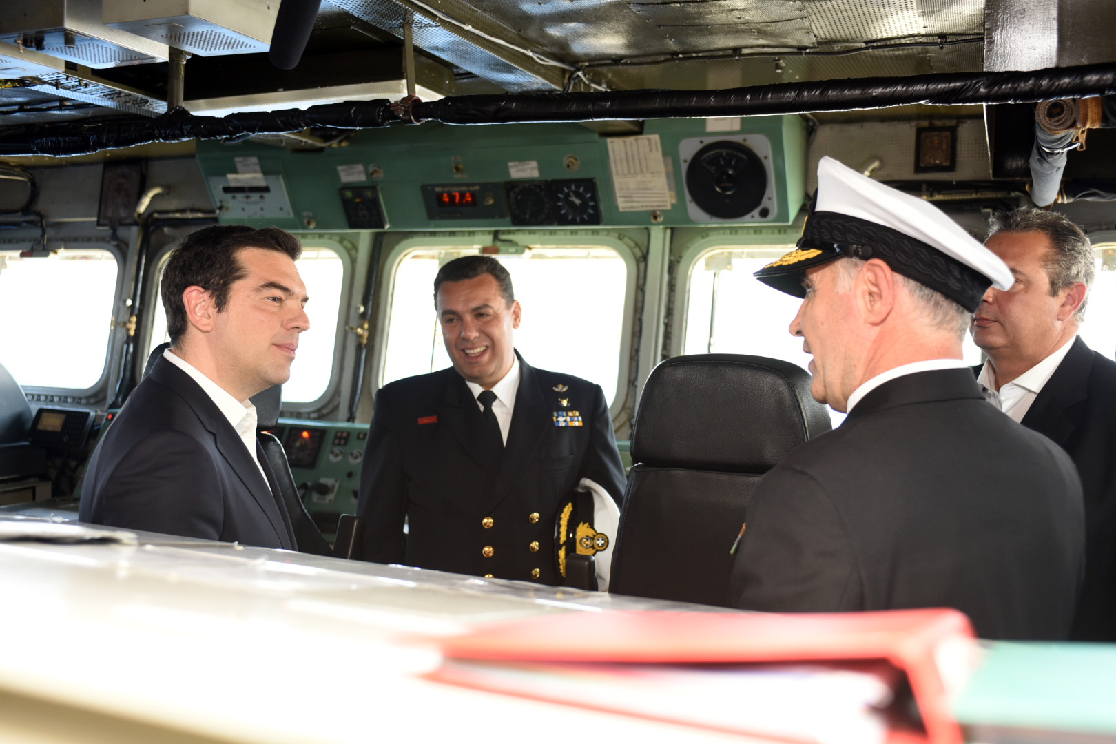 Δείτε τις φωτογραφίες από την επίσκεψη του Αλέξη Τσίπρα και του Πάνου Καμμένου στη φρεγάτα “Αδριάς”.
