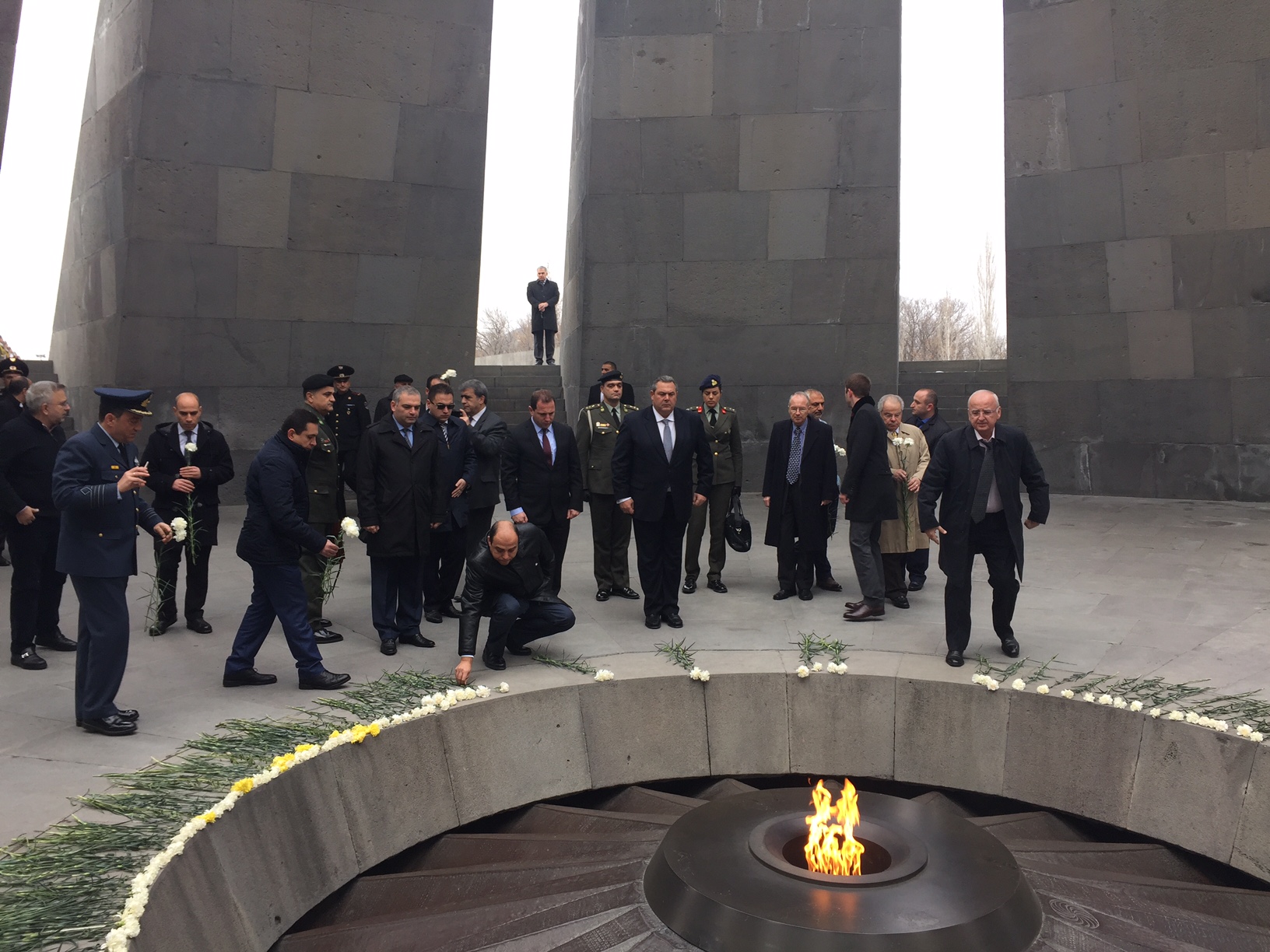 Ο Υπουργός Εθνικής Άμυνας Πάνος Καμμένος, στο πλαίσιο της επίσημης επίσκεψης που πραγματοποιεί στην Αρμενία, κατέθεσε στεφάνι στο Μνημείο Θυμάτων Γενοκτονίας.
