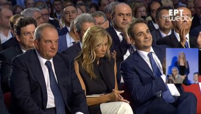 Ο πρώην Πρωθυπουργός, Κώστας Καραμανλής, στο πλευρό του Κυριάκου Μητσοτάκη, λίγο πριν την πρώτη ομιλία του προέδρου της Νέας Δημοκρατίας στη ΔΕΘ.