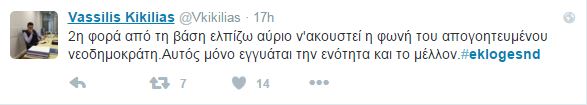 O Κικίλιας για την προσέλευση των Νεοδημοκρατών – ΦΩΤΟ Enikos Newsroom 13:44, Κυριακή 20 Δεκεμβρίου 2015 πολιτική Ο βουλευτής της Νέας Δημοκρατίας, Βασίλης Κικίλιας, έκανε ανάρτηση μέσω του προσωπικού του λογαριασμού στο Twitter, με την οποία σχολίασε την πορεία της εκλογικής διαδικασίας και το μέλλον του κόμματος. Δείτε την ανάρτησή του εδώ: Διαβάστε επίσης: Μαρκόπουλος: Αιφνιδιαστήκαμε κι εμείς από την προσέλευση ΒΑΣΙΛΗΣ ΚΙΚΙΛΙΑΣ ΕΚΛΟΓΕΣ ΝΔ ΚΙΚΙΛΙΑΣ Μοιράσου το: σχολίασε κι εσύ (0 σχόλια) Ακολουθήστε το enikos.gr στο Google News και μάθετε πρώτοι όλες τις ειδήσεις Δείτε όλες τις τελευταίες ειδήσεις από την Ελλάδα και τον Κόσμο στο enikos.gr Ειδήσεις Ροή Ειδήσεων 3 ώρες πριν Ακίλα Σάλεχ: «Άκυρο» το τουρκολιβυκό μνημόνιο λέει ο πρόεδρος της λιβυκής Βουλής – Ανοίγει ο διάλογος με Ελλάδα, Αίγυπτο και Τουρκία 7 ώρες πριν Αγρότες: Την Τρίτη η απόφαση για διάλογο ή κλιμάκωση των κινητοποιήσεών τους – Πώς χαρακτηρίζουν τις ανακοινώσεις Τσιάρα και οι επόμενες κινήσεις 6 ώρες πριν Τραμπ για Ουκρανία: «Είμαστε πιο κοντά σε συμφωνία από ποτέ» – «Πολυεθνική δύναμη» προτείνουν οι Ευρωπαίοι 7 ώρες πριν Κυψέλη: Η 16χρονη που μαχαίρωσε την 14χρονη είχε συλληφθεί 3 φορές στο παρελθόν – Έβριζε καθηγητές, έβαζε φωτιές σε κάδους και εκβίαζε συμμαθητές της 6 ώρες πριν Τρομοκρατική επίθεση στο Σίδνεϊ: Θλίψη για τα 15 θύματα – Οργή στην εβραϊκή κοινότητα που προειδοποιούσε επί δύο χρόνια 6 ώρες πριν Επιστήμονες ίσως έλυσαν το μυστήριο γύρω από τα Χόμπιτ – Νέα έρευνα αποκαλύπτει πώς εξαφανίστηκαν 7 ώρες πριν Ύπνος: Η αρχαία μορφή άσκησης που αποδεικνύεται αποτελεσματική στην αντιμετώπιση της αϋπνίας, σύμφωνα με μελέτη 8 ώρες πριν Αριθμολογία: Ο τυχερός σας αριθμός, ανάλογα με τον μήνα γέννησής σας 9 ώρες πριν Πώς να μην μαραίνονται γρήγορα τα κομμένα λουλούδια: Το λάθος στην τοποθέτηση του βάζου που πρέπει να αποφεύγετε 4 λεπτά πριν Εφημερεύοντα φαρμακεία σε Αθήνα και Θεσσαλονίκη (16/12) 11 λεπτά πριν Οκτώ νεκροί σε πλήγματα των ΗΠΑ κατά τριών σκαφών που φέρεται να μετέφεραν ναρκωτικά στον Ανατολικό Ειρηνικό 21 λεπτά πριν Γιώργος Αγγελόπουλος: «Δεν υπήρχε περίπτωση να πάω ξανά στο Survivor – Πώς σχολίασε τον διαχωρισμό σε Αθηναίους κι Επαρχιώτες; 36 λεπτά πριν Λίβανος: Πρόθεση του στρατού είναι να αφοπλίσει τη Χεζμπολάχ 51 λεπτά πριν Νεοκλής Αβδάλας: Συνεχίζει να εντυπωσιάζει τους Αμερικάνους – Αναδείχθηκε Rookie of the week στην περιφέρειά του στο NCAA ENIKOS NETWORK Πότε το χρόνιο ροχαλητό να αποτελέσει ένδειξη κινδύνου για την καρδιά; Τι λένε οι ειδικοί Μάριος Θεμιστοκλέους: Το ΕΣΥ ενισχύεται, εκσυγχρονίζεται, αλλάζει ΕΒΕΠ για αγροτικές κινητοποιήσεις: Κάθε επιπλέον εβδομάδα προσθέτει περίπου 200 εκατ. ευρώ ζημιά Τι προβλέπει το νομοσχέδιο του υπουργείου Εθνικής Άμυνας – Oι αλλαγές στους μισθούς Σύγχρονος Νοστράδαμος: Προειδοποιεί για «μεγάλο γεγονός» τους επόμενους μήνες που θα συγκλονίσει τη Βρετανία και τον κόσμο Τεστ παρατηρητικότητας: Μπορείτε να βρείτε τις 3 διαφορές στις εικόνες με έναν πιγκουίνο σε 14 δευτερόλεπτα περισσότερα 01:00 , Τρίτη 16 Δεκεμβρίου 2025 Βουλή, Προϋπολογισμός 2026 – Γιάννης Βρούτσης: Ο ελληνικός αθλητισμός μεγεθύνεται – Αυξάνεται η χρηματοδότηση, αθλητικά έργα σε όλη την επικράτεια «Αυξάνονται οι πόροι για τον αθλητισμό. Ο ελληνικός αθλητισμός αυξάνεται και μεγεθύνεται. Η Ελ... 00:15 , Τρίτη 16 Δεκεμβρίου 2025 Παύλος Μαρινάκης: Ο διάλογος με τους αγρότες δεν σταμάτησε ποτέ – Κομματική πει