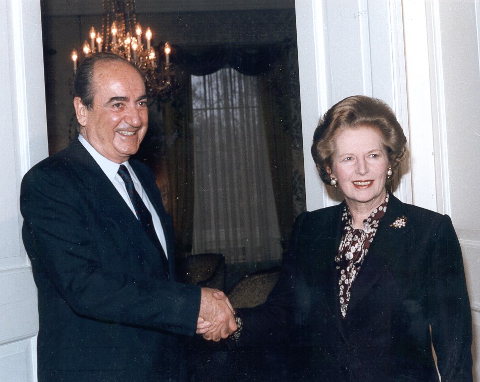 Συνάντηση με την πρωθυπουργό της Βρετανίας Μάργκαρετ Θάτσερ, γράφει πάνω από τη φωτογραφία που ανήρτησε.