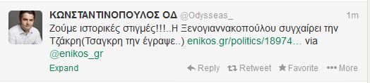Πριν από λίγο ο εκπρόσωπος Τύπου του ΠΑΣΟΚ, Οδυσσέας Κωνσταντινόπουλος, σχολίασε την ανάρτηση του enikos.gr για τα συγχαρητήρια της Μαριλίζας Ξενογιαννακοπούλου στη Θεοδώρα Τζάκρη.