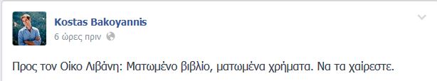 “Προς τον Οίκο Λιβάνη: Ματωμένο βιβλίο, ματωμένα χρήματα. Να τα χαίρεστε”.