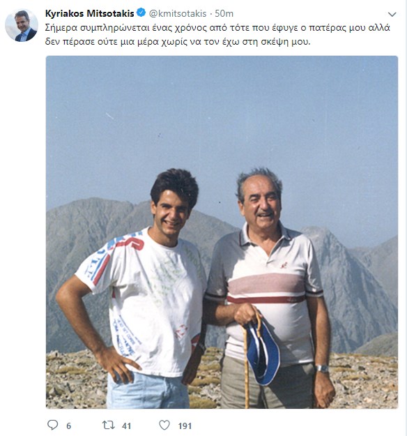 «Σήμερα συμπληρώνεται ένας χρόνος από τότε που έφυγε ο πατέρας μου, αλλά δεν πέρασε ούτε μια μέρα χωρίς να τον έχω στη σκέψη μου» γράφει ο Κυριάκος Μητσοτάκης.