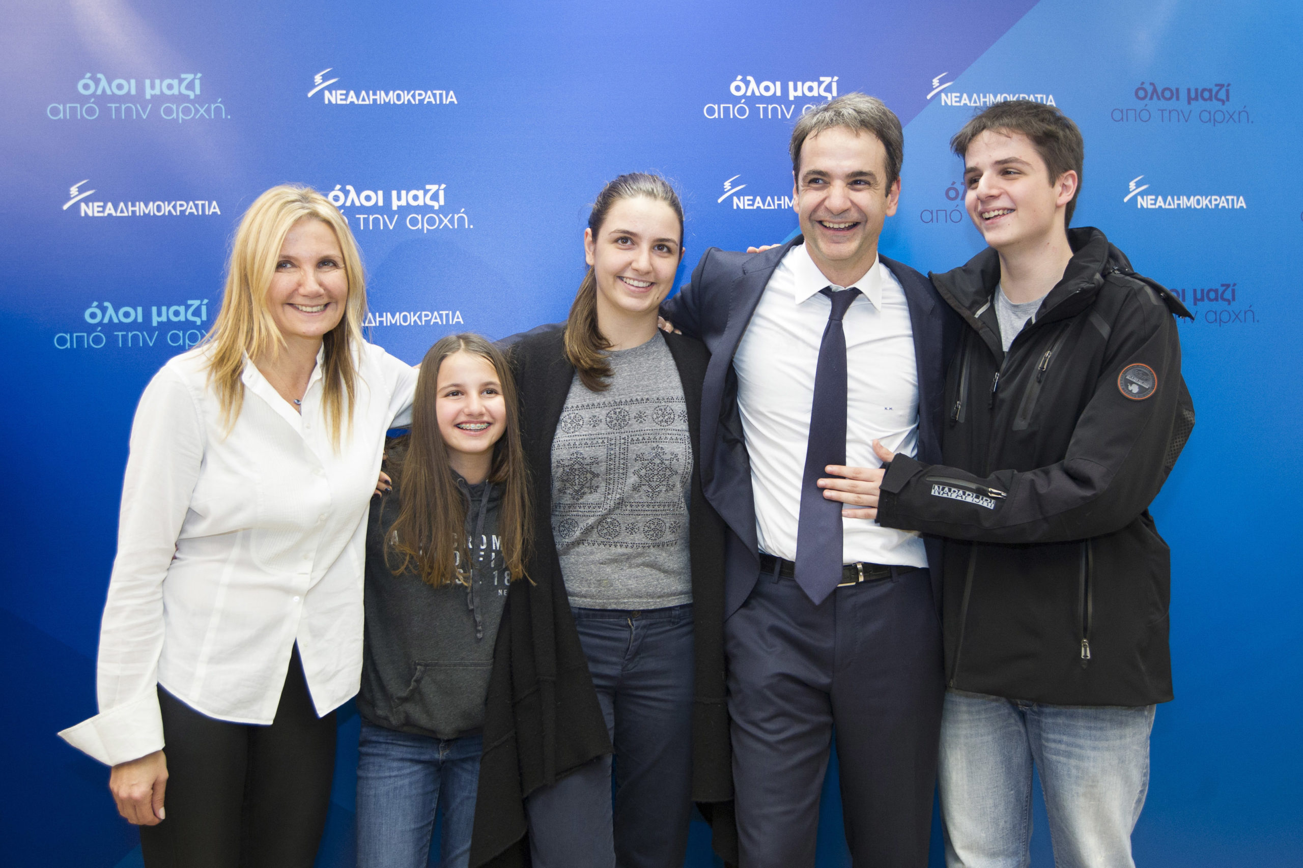 Ο Κυριάκος Μητσοτάκης έβγαλε μια οικογενειακή φωτογραφία στο γραφείο του στη Χαλκοκονδύλη για την εκλογή του στην προεδρία της Νέας Δημοκρατίας. Μαζί του πόζαραν η σύζυγος του Μαρέβα και τα τρία παιδιά του.