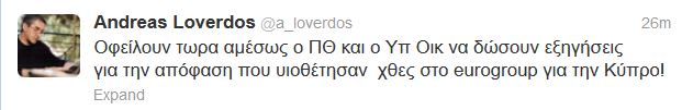 “Oφείλουν τώρα αμέσως ο πρωθυπουργός και ο ��πουργός Οικονομικών να δώσουν εξηγήσεις”, twittάρει ο Ανδρέας Λοβέρδος.