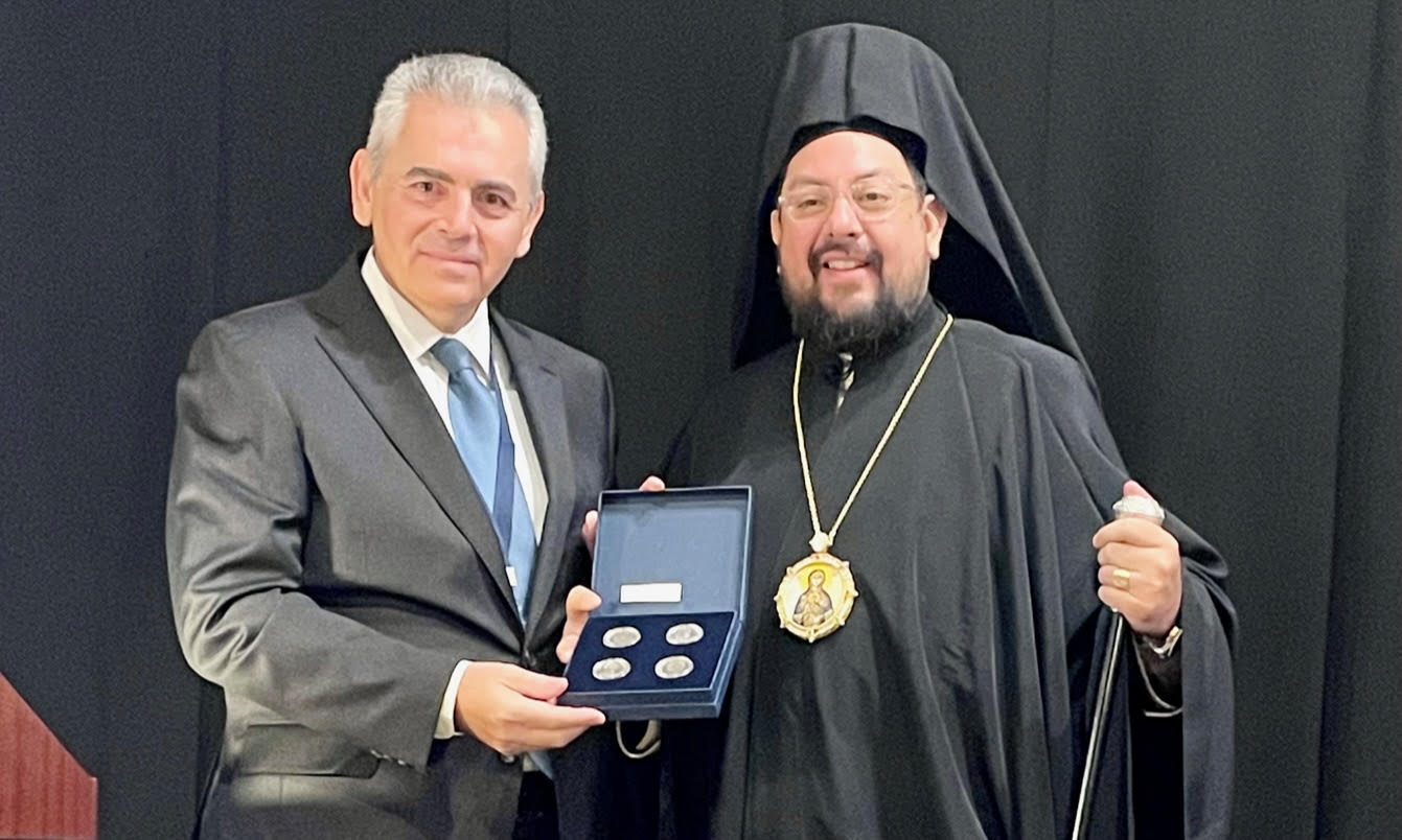 Ο Θεσσαλός πολιτικός, μαζί με τους εγκάρδιους χαιρετισμούς του Προέδρου της Βουλής κ. Κώστα Τασούλα προς την ομογένεια της Λατινικής Αμερικής, προσέφερε στον μητροπολίτη κ. Ιωσήφ τα αργυρά μετάλλια με αγωνιστές της Ελληνικής Επανάστασης που έκοψε η Βουλή των Ελλήνων για τα 200 χρόνια από την έναρξη του Αγώνα της Ανεξαρτησίας.
