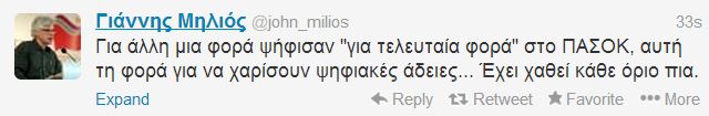 “Για άλλη μία φορά ψήφισαν “για τελευταία φορά” στο ΠΑΣΟΚ, αυτή τη φορά για να χαρίσουν ψηφιακές άδειες… Έχει χαθεί κάθε όριο πια.”, έγραψε ο Γιάννης Μηλιός.