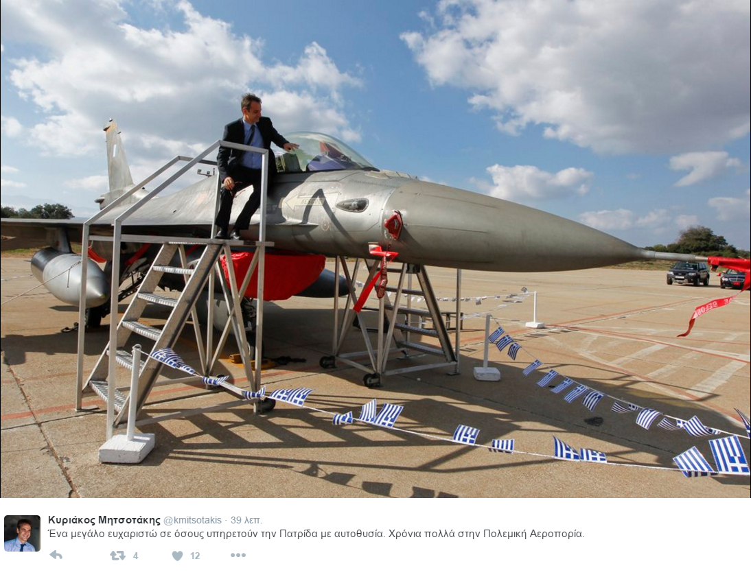 Παράλληλα, ο Κυριάκος Μητσοτάκης, από την 115 Πτέρυγα Μάχης στα Χανιά φωτογραφήθηκε δίπλα σε ένα F-16 της Πολεμικής Αεροπορίας.