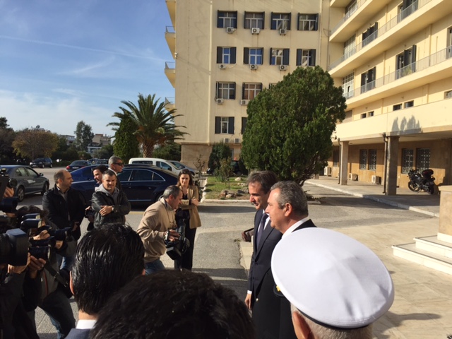 Στο ΥΠΕΘΑ τον ανέμενε ο υπουργός Πάνος Καμμένος και από τη ΝΔ ήταν ήδη εκεί ο διευθυντής του Γραφείου Τύπου Μακάριος Λαζαρίδης και ο εκπρόσωπος Τύπου του κόμματος Βασίλης Κικίλιας.