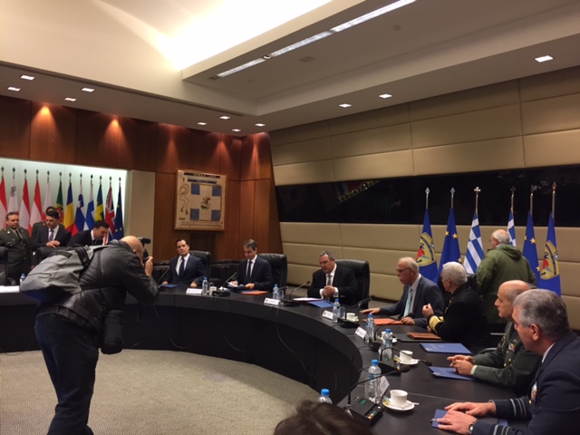 Όπως αναφέρει το militaire.gr, οι φωτογράφοι ζήτησαν από τους δύο προέδρους την καθιερωμένη χειραψία και στη συνέχεια Μητσοτάκης και Καμμένος πήγαν στην αίθουσα ΚΥΣΕΑ όπου γίνεται η ενημέρωση του προέδρου της ΝΔ από τους επιτελείς.