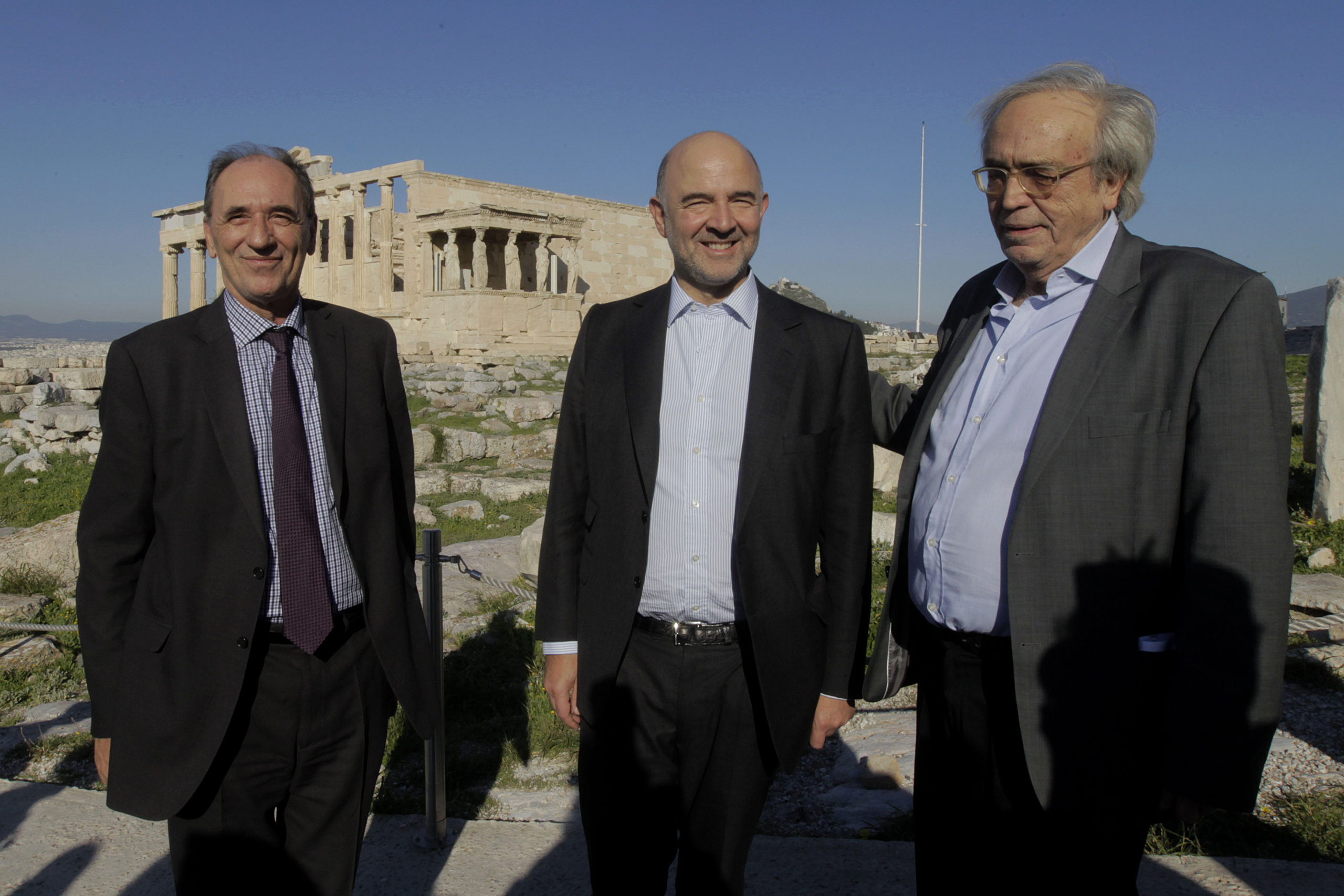 Τον κ. Μοσκοβισί συνόδευσαν ο υπουργός Οικονομίας και Ανταγωνιστικότητας, Γιώργος Σταθάκης και ο υπουργός Πολιτισμού και Αθλητισμού Αριστείδης Μπαλτάς.