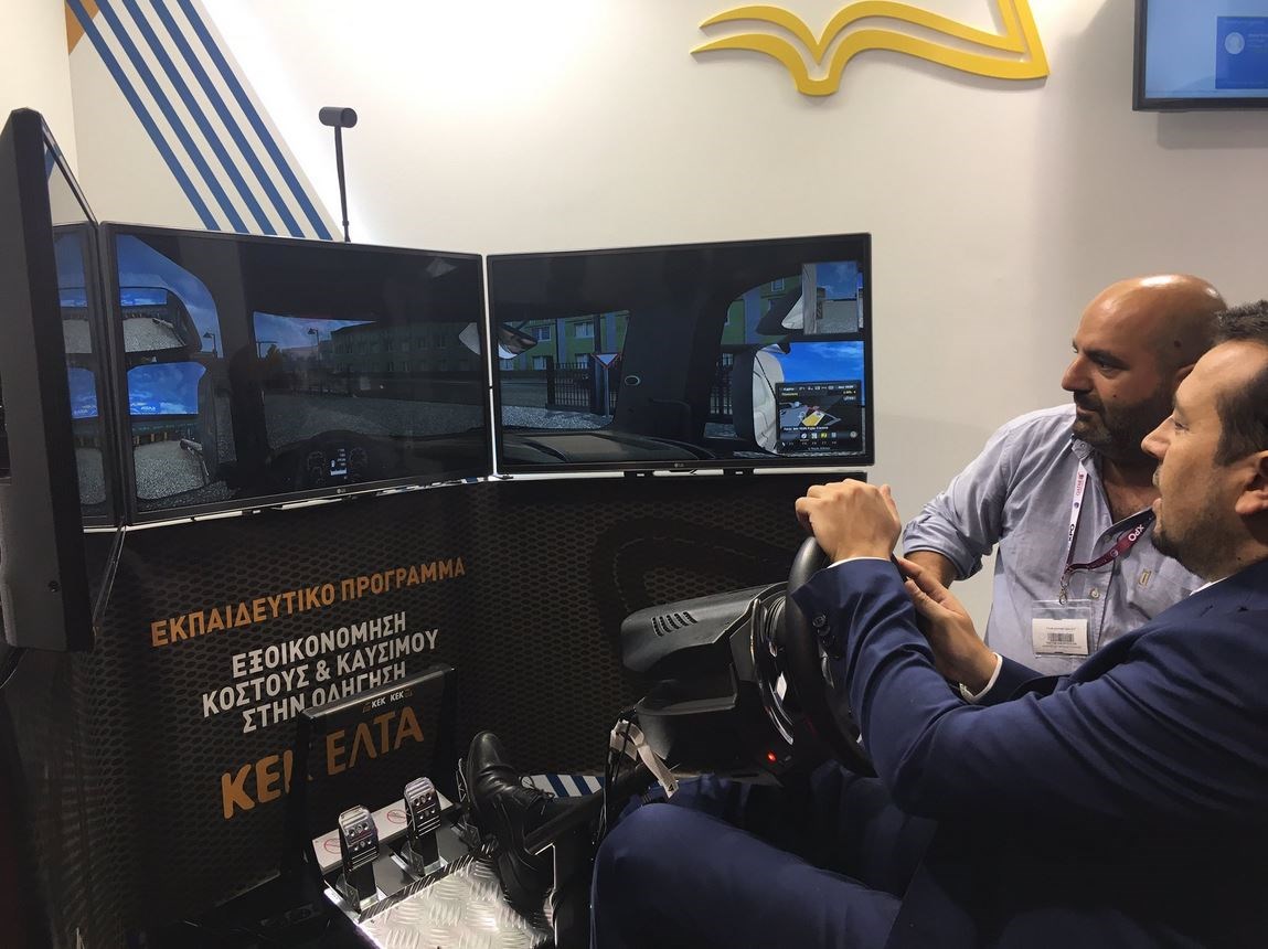 Ο υπουργός βρέθηκε στο περίπτερο των ΕΛΤΑ και οδήγησε, σε προσομείωση, ένα τριαξονικό.