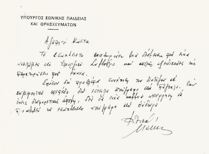 Αξίζει να σημειωθεί ότι η επιστολή βρίσκεται και στο αρχείο του Ιδρύματος Σημίτη, στο link http://repository.costas-simitis.gr/ sf-repository/handle/11649/43334.