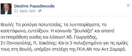Βουλή: Τα ρολόγια πολυτελείας, τα λυντσαρίσματα, τα κασετόφωνα, ευτελίζουν. Η κοινωνία “βουλιάζει” και απαιτεί αντιπαράθεση ουσίας και λύσεων! Αδ. Γεωργιάδης, Στ.Παναγούλης, Π. Χαικάλης: Και οι 3 πολυσυζητημένοι για τις ομιλίες τους στη Βουλή, υπήρξαν στελέχη της ΠΟΛ.ΑΝ του Αντ.Σαμαρά.