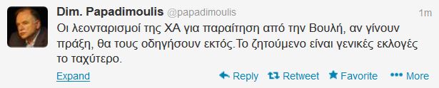 Πριν από λίγο ο Δημήτρης Παπαδημούλης σχολίασε τα σενάρια που θέλουν να παραιτείται σύσσωμη η κοινοβουλευτική ομάδα της Χρυσής Αυγής, αλλά και το τι θα σήμανε αυτό.