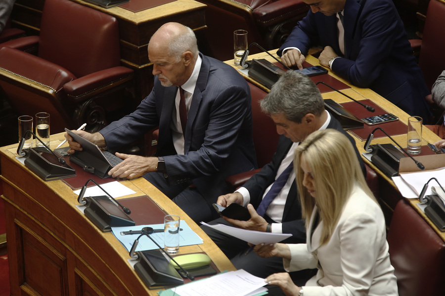 Ο Γιώργος Παπανδρέου κάθισε στα μπροστινά έδρανα της Βουλής όπου παρακολούθησε τη συζήτηση επί των προγραμματικών δηλώσεων.