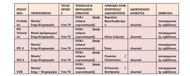 Μάλιστα, η κυβέρνηση κατέθεσε στη Βουλή τα επίσημα στοιχεία της βάσης δεδομένων MAVISE (http://mavise.obs.coe.int/) -που αναπτύχθηκε σε συνεργασία με τη Γενική Διεύθυνση Επικοινωνιών της Ευρωπαϊκής Επιτροπής και ανήκει στην Ε.Ε.- η οποία αναφέρει ότι στη Γερμανία λειτουργούν 6 τέτοιου είδους κανάλια.
