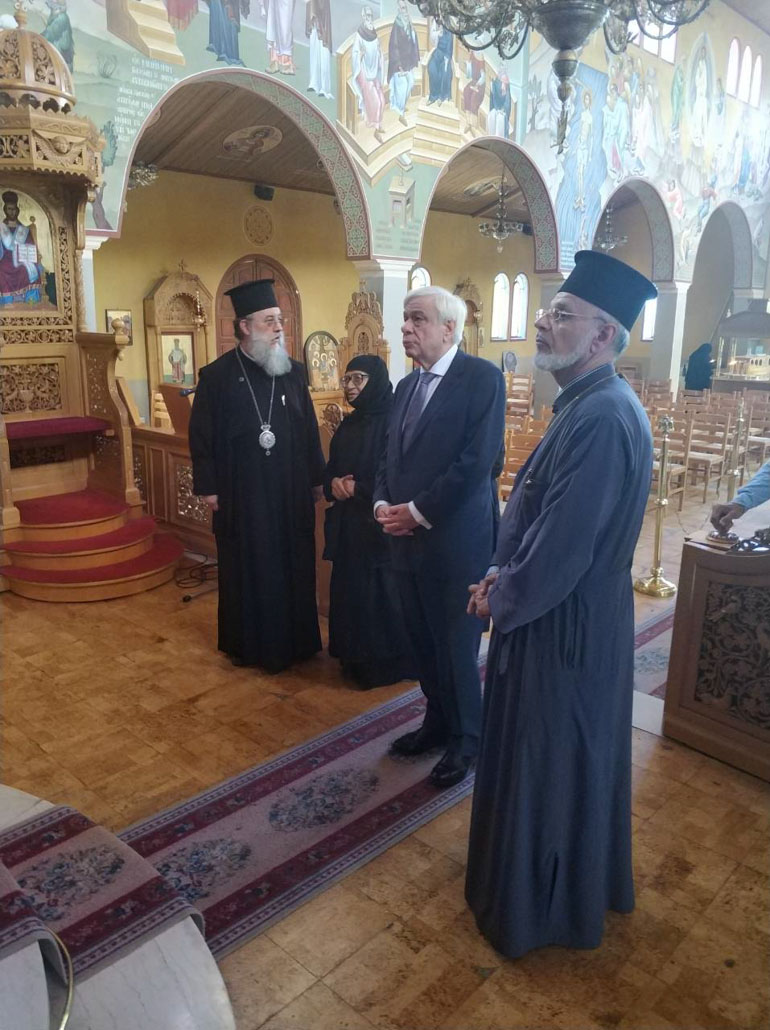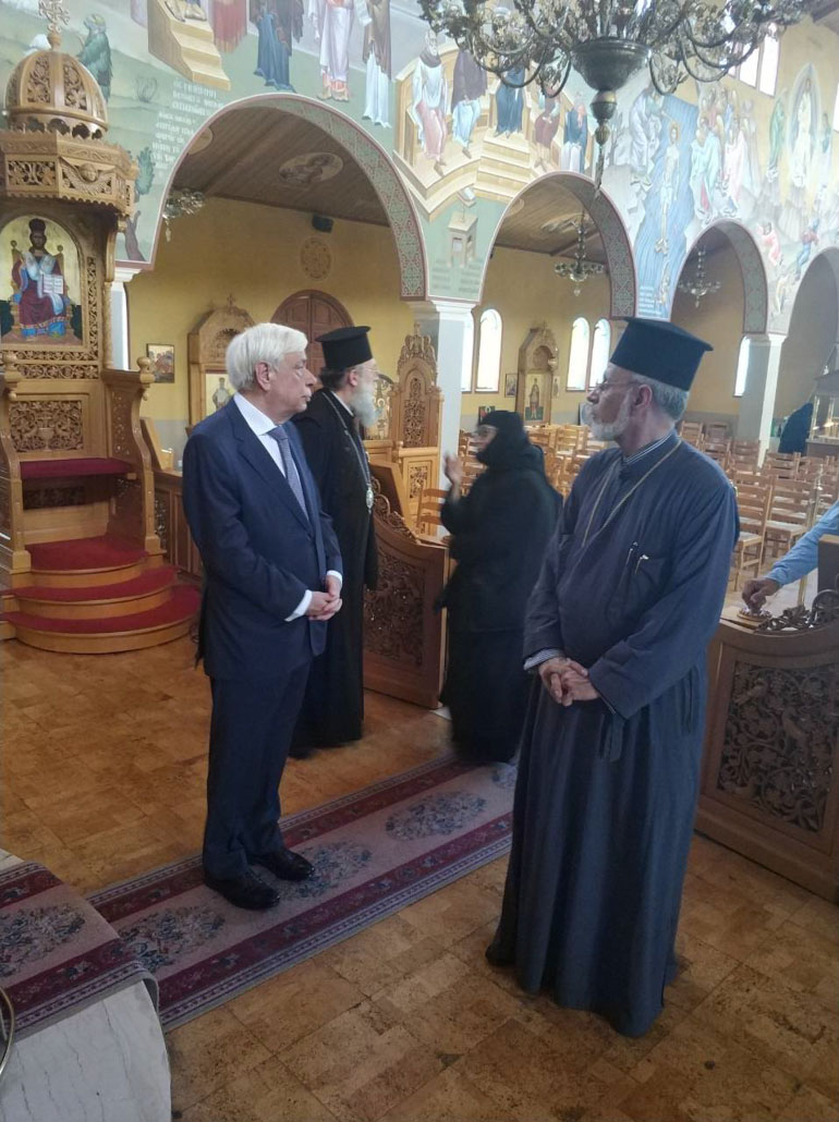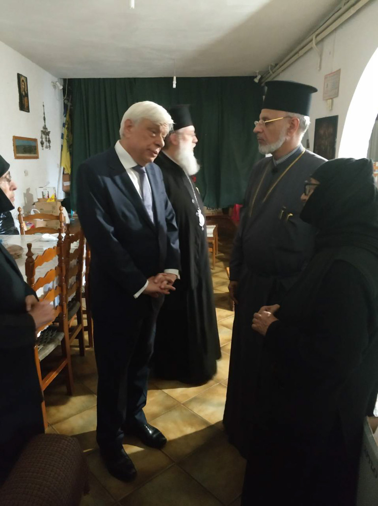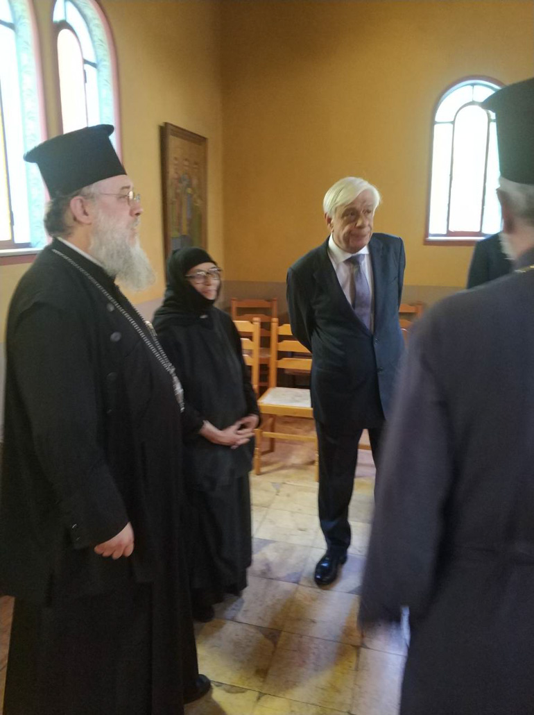 Τον κ. Παυλόπουλο υποδέχθηκαν και ξενάγησαν στους κατεστραμμένους χώρους της Μονής και του Παιδικού Ιδρύματος ο Μητροπολίτης Κηφισιάς, Αμαρουσίου και Ωρωπού Κύριλλος, η ηγουμένη και οι μοναχές.