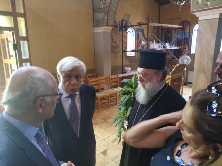 Ο Σεβασμιώτατος Κύριλλος ενημέρωσε τον κ. Παυλόπουλο για τις κινήσεις και τις προσπάθειες που γίνονται για την ανακατασκευή των κτισμάτων του Ιδρύματος και του περιβάλλοντος χώρου.