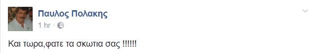 Mε ανάρτησή του στον λογαριασμό του στο Facebook, ο αναπληρωτής υπουργός Υγείας Παύλος Πολάκης σχολίασε την είδηση της εξόδου της Ελλάδας στις αγορές, την οποία ανακοίνωσε η κυβέρνηση.