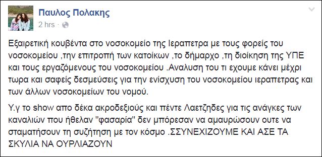 Διαβάστε εδώ αναλυτικά την ανάρτηση του Παύλου Πολάκη: