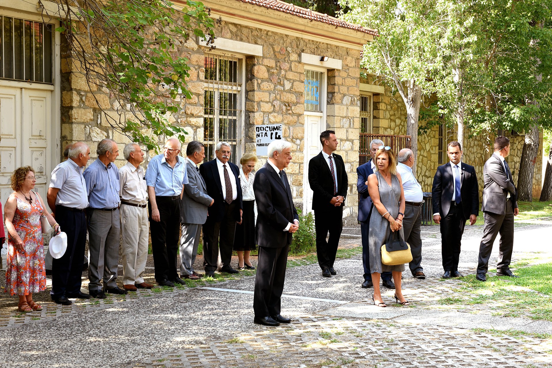 Ο κ. Παυλόπουλος ξεναγήθηκε από τον πρόεδρο του Συνδέσμου Φυλακισθέντων και Εξορισθέντων Αντιστασιακών της επταετίας, Κώστα Μανταίο, στον χώρο του πρώην στρατοπέδου “ΕΑΤ-ΕΣΑ” και στα κελιά όπου βασανίστηκαν οι αντιστασιακοί Σπύρος Μουστακλής και Αλέκος Παναγούλης.
