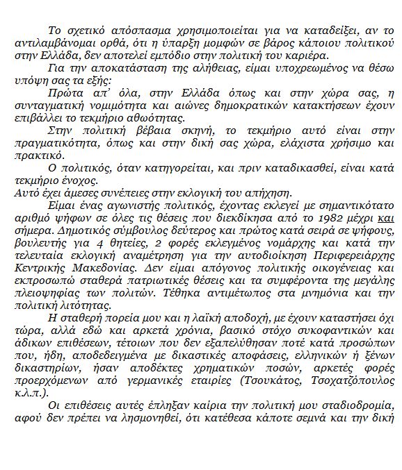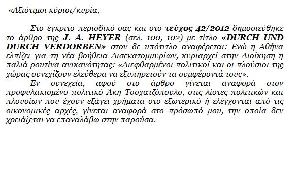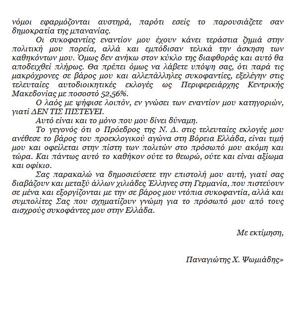 Το πλήρες κείμενο της επιστολής του Π. Ψωμιάδη προς το περιοδικό “Der Spiegel” έχει ως εξής: