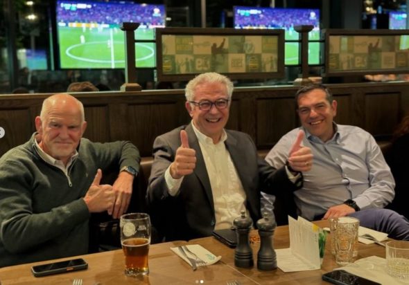 Στη συνέχεια, πήγαν σε μπυραρία μαζί με τον Γιώργο Παπανδρέου για το δεύτερο ημίχρονο του ματς. «Ως Ολυμπιακός, πανηγυρίζω ανάμεσα σε δύο Παναθηναϊκούς που όμως το χάρηκαν ως Έλληνες», έγραψε στο Instagram ο κ. Ρουσσόπουλος, ο οποίος δεν μπορούσε να συγκρατήσει την χαρά του για την κατάκτηση του ευρωπαϊκού τρόπαιου.