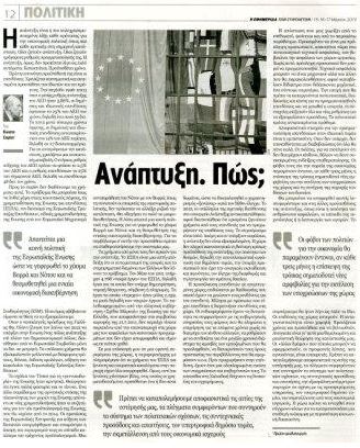 Η ανάπτυξη είναι η πιο πολυχρησιμοποιημένη λέξη κάθε πρότασης για την οικονομική πολιτική, όπως και κάθε κριτικής στην σημερινή κατάσταση. Όλοι ζητούν ανάπτυξη. Όλοι ζητούν γρήγορους ρυθμούς πραγματοποίησής της. Η ανάπτυξη όμως δεν προκύπτει λίγο ως πολύ αυτόματα. Κατακτιέται. Προϋποθέτει χρόνο.