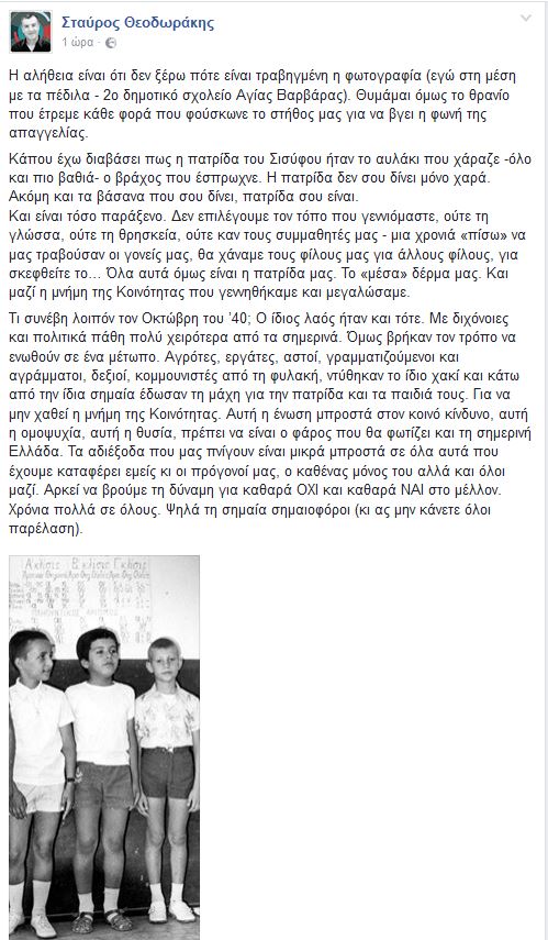 Σε μια ανάρτηση στο facebook ο επικεφαλής του Ποταμιού γράφει: