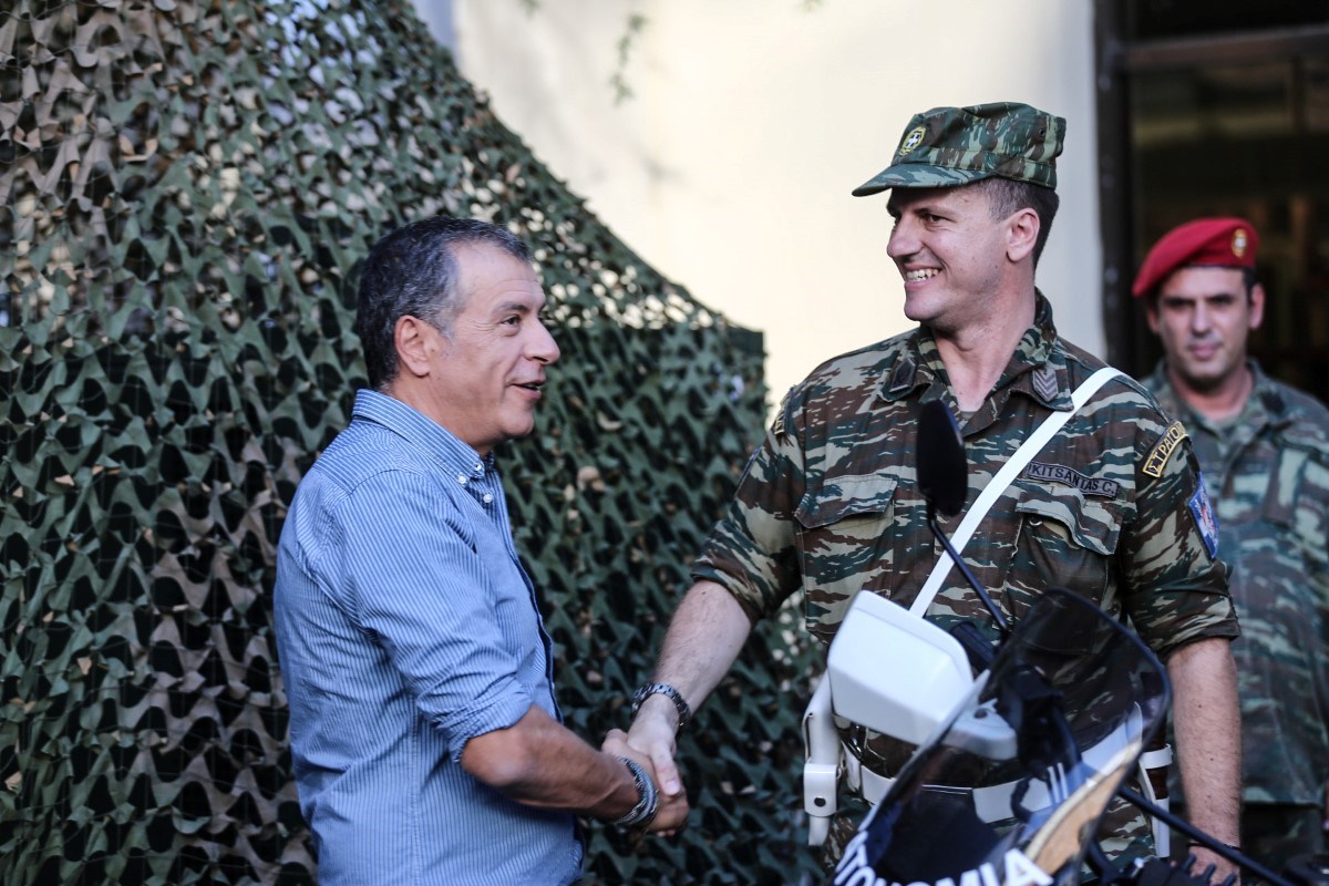 Ο επικεφαλής του Ποταμιού, Σταύρος Θεοδωράκης, πραγματοποίησε χθες την καθιερωμένη βόλτα στον εκθεσιακό χώρο της 82ης Διεθνούς Έκθεσης Θεσσαλονίκης, όπου επισκέφθηκε, εκτός των άλλων, και το περίπτερο των Ενόπλων Δυνάμεων.