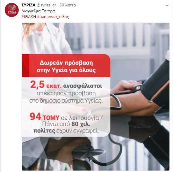 Με τη ρύθμιση του χρέους έως το 2032, η Ελλάδα γλυτώνει 50 δισ. ευρώ συνολικά, αναφέρει ο ΣΥΡΙΖΑ σε ανάρτησή του στο Twitter, με αφορμή το διάγγελμα του πρωθυπουργού, Αλέξη Τσίπρα για το τέλος των μνημονίων.