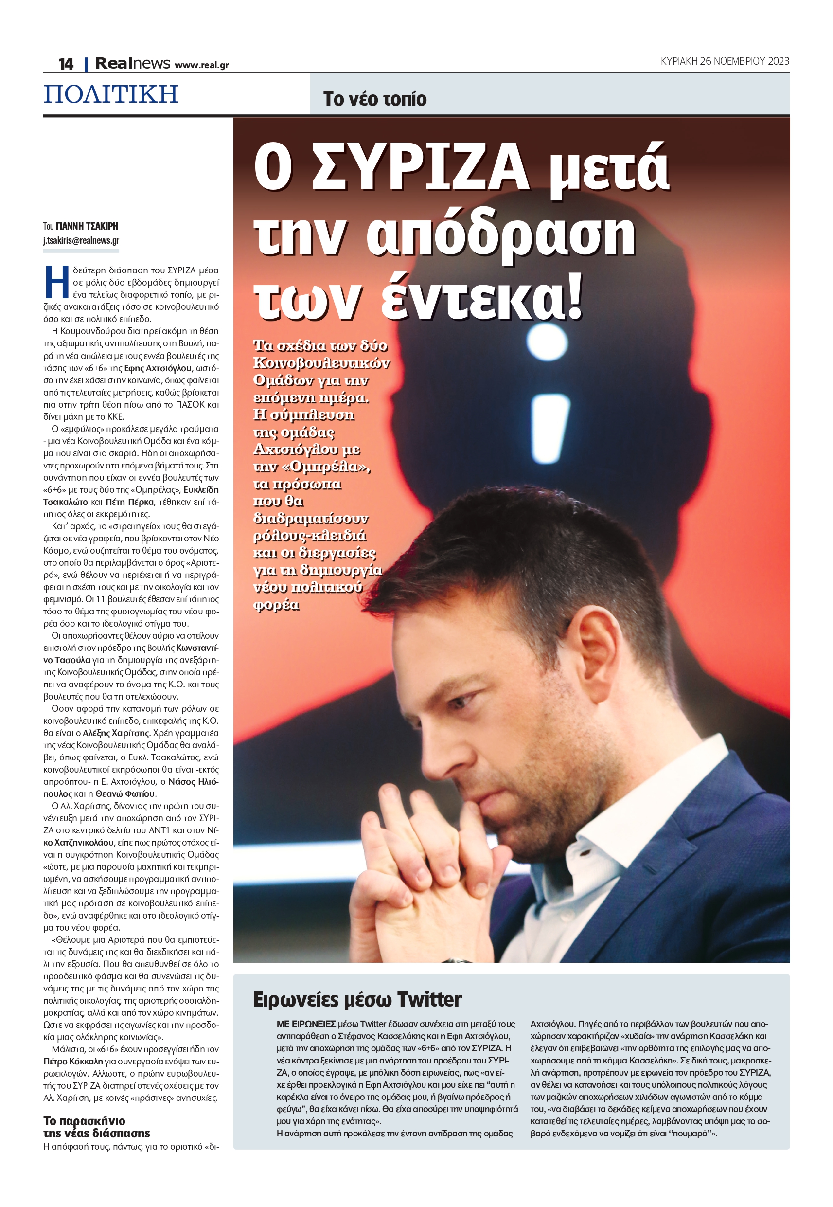 Πάντως, η αποχώρηση της γενιάς των «σαραντάρηδων» από τον ΣΥΡΙΖΑ υποχρεώνει τον Στ. Κασσελάκη να προχωρήσει γρήγορα στην ανανέωση του κόμματος, βγάζοντας μπροστά νέα πρόσωπα αλλά με τεχνοκρατική επάρκεια, προκειμένου να καλύψει την απώλεια των βουλευτών που ξεχώριζαν για την κυβερνητική τους θητεία, όπως η Ε. Αχτσιόγλου, ο Αλ. Χαρίτσης και ο Δημήτρης Τζανακόπουλος.