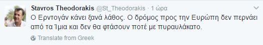 Τη σημερινή τουρκική πρόκληση στα Ίμια σχολίασε με ανάρτησή του στο twitter o επικεφαλής του Ποταμιού Σταύρος Θεοδωράκης.