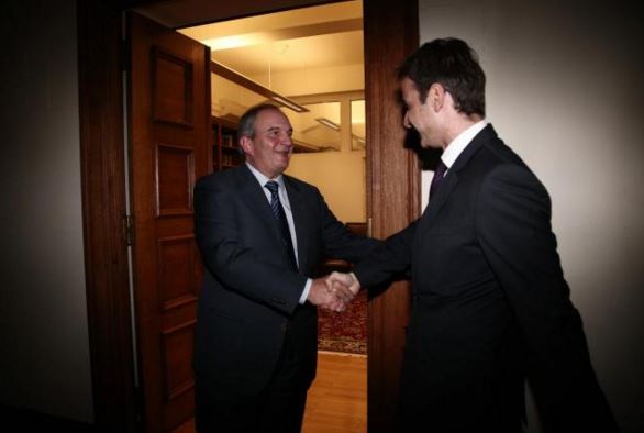 Συνάντηση με τον πρώην Πρόεδρο της Νέας Δημοκρατίας Κώστα Καραμανλή, είχε ο νέος πρόεδρος της ΝΔ, Κυριάκος Μητσοτάκης. Όπως φαίνεται και στη φωτογραφία οι δύο τους είχαν θερμό χαιρετισμό ενώ δεν έλειψαν και τα χαμόγελα.