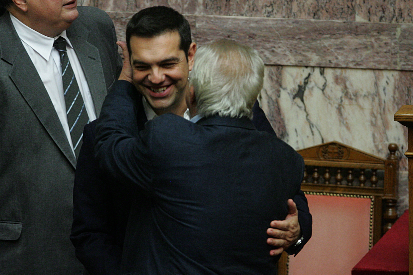 Ένα θερμό χαιρετισμό είχαν ο Πρωθυπουργός Αλέξης Τσίπρας, και ο Αλέκος Φλαμπουράρης, κατά τη διάρκεια της συζήτησης στη Βουλή για το πολυνομοσχέδιο, ενώ όπως φαίνεται και στη φωτογραφία δεν έλειψαν και τα χαμόγελα.
