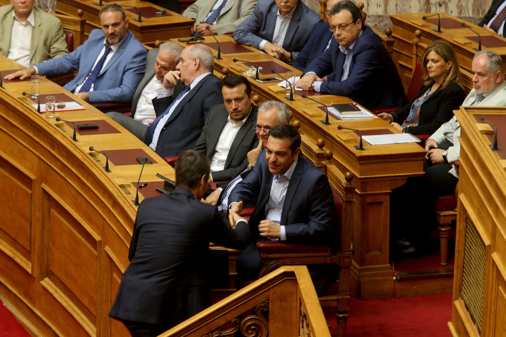 Ο θερμός χαιρετισμός Τσίπρα – Μητσοτάκη στη Βουλή – ΦΩΤΟ