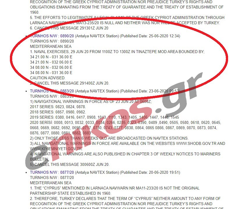 Συνοδευόμενο από πομπώδεις τίτλους, κάτω από κάθε αναγγελία NAVTEX, οι Τούρκοι προσπάθησαν να δείξουν ότι έχουν το πάνω χέρι στην Μεσόγειο.
