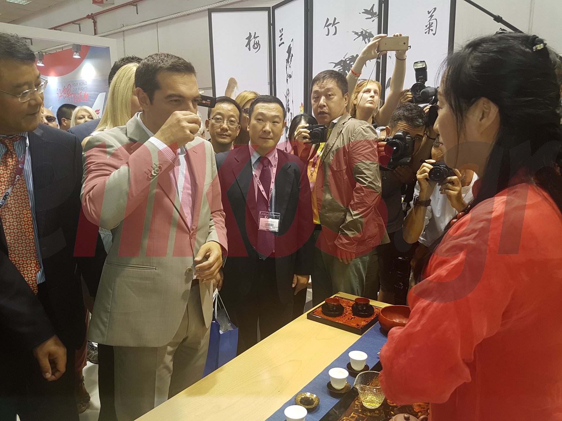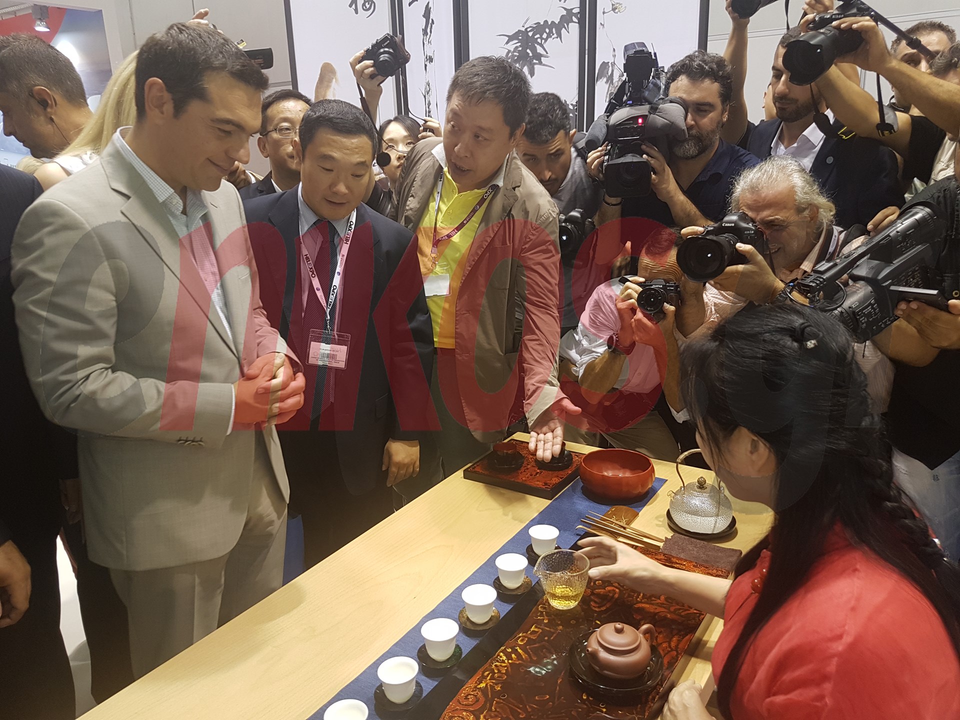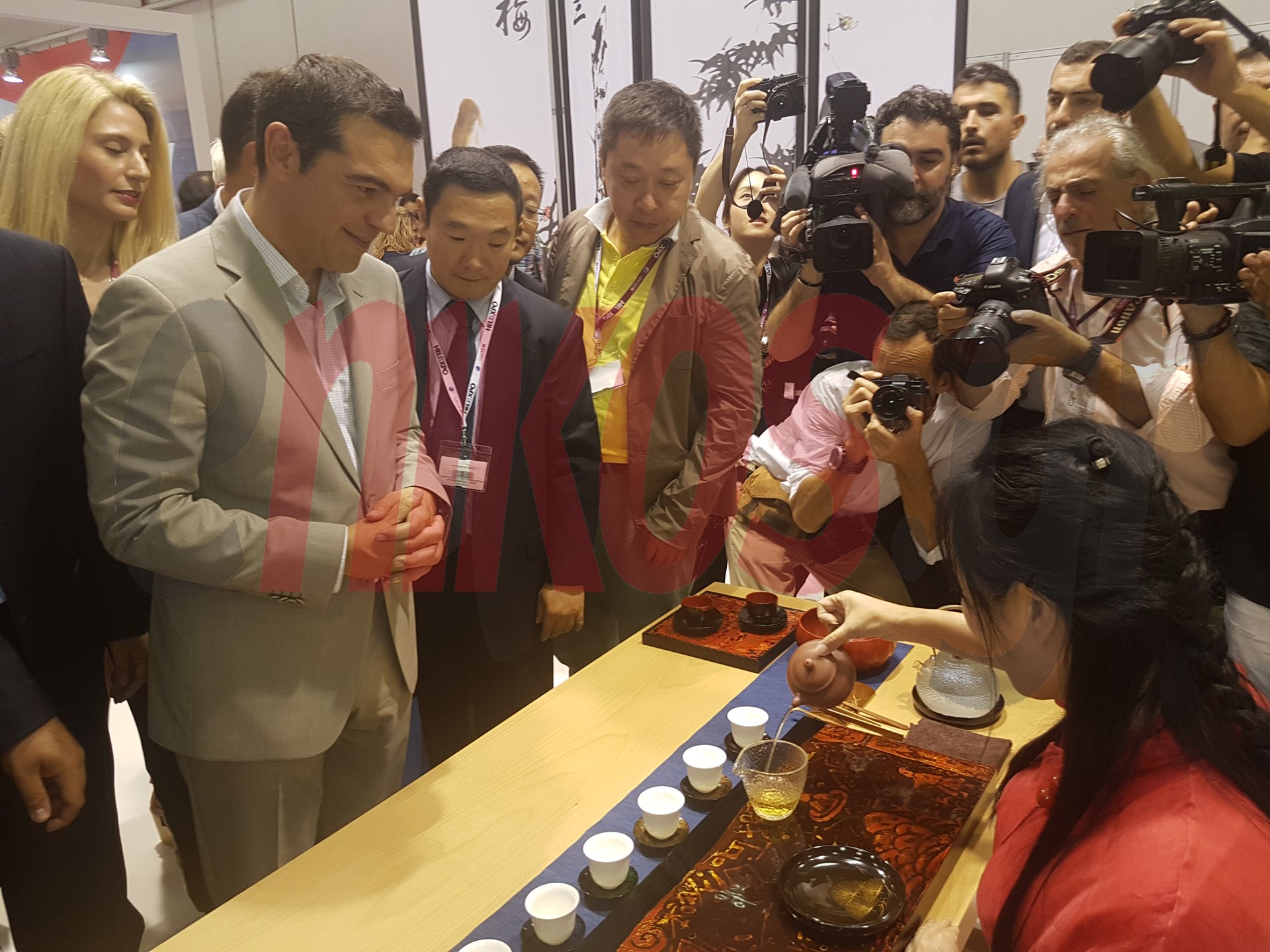Ο Πρωθυπουργός Αλέξης Τσίπρας εγκαινίασε το περίπτερο της Κίνας που είναι η τιμώμενη χώρα στη φετινή 82η Διεθνή Έκθεση Θεσσαλονίκης, όπου δοκίμασε τσάι.