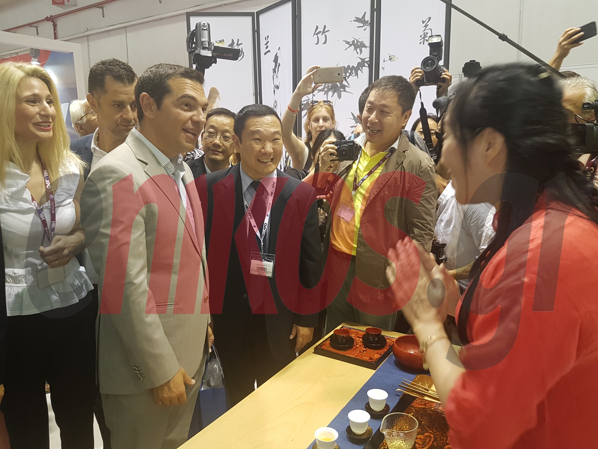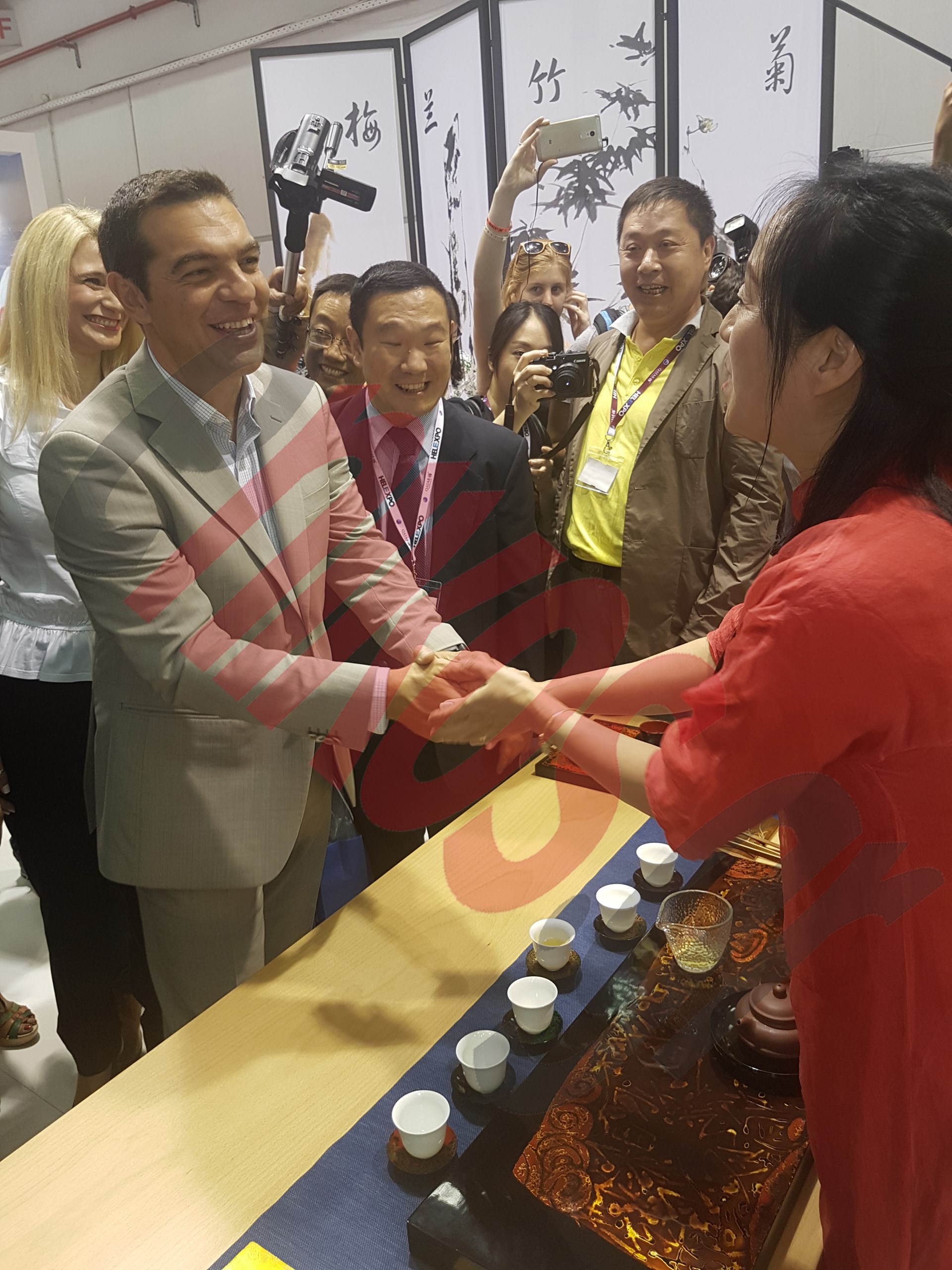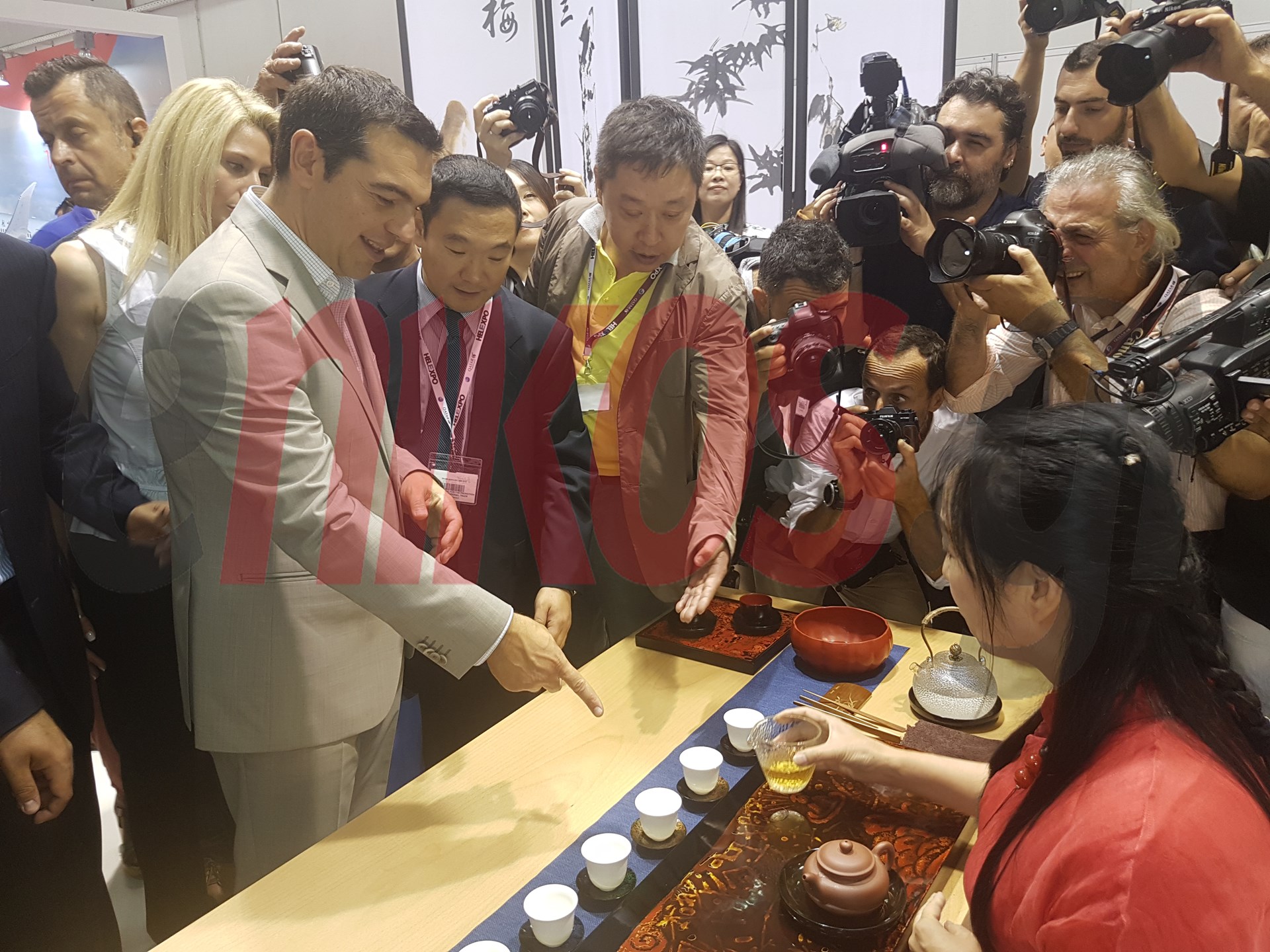 Ο Πρωθυπουργός Αλέξης Τσίπρας εγκαινίασε το περίπτερο της Κίνας που είναι η τιμώμενη χώρα στη φετινή 82η Διεθνή Έκθεση Θεσσαλονίκης, όπου δοκίμασε τσάι.