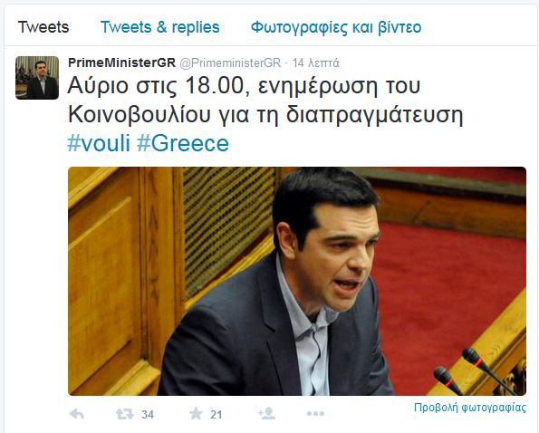 «Aύριο στις 18.00, ενημέρωση του Κοινοβουλίου για τη διαπραγμάτευση #vouli #Greece».